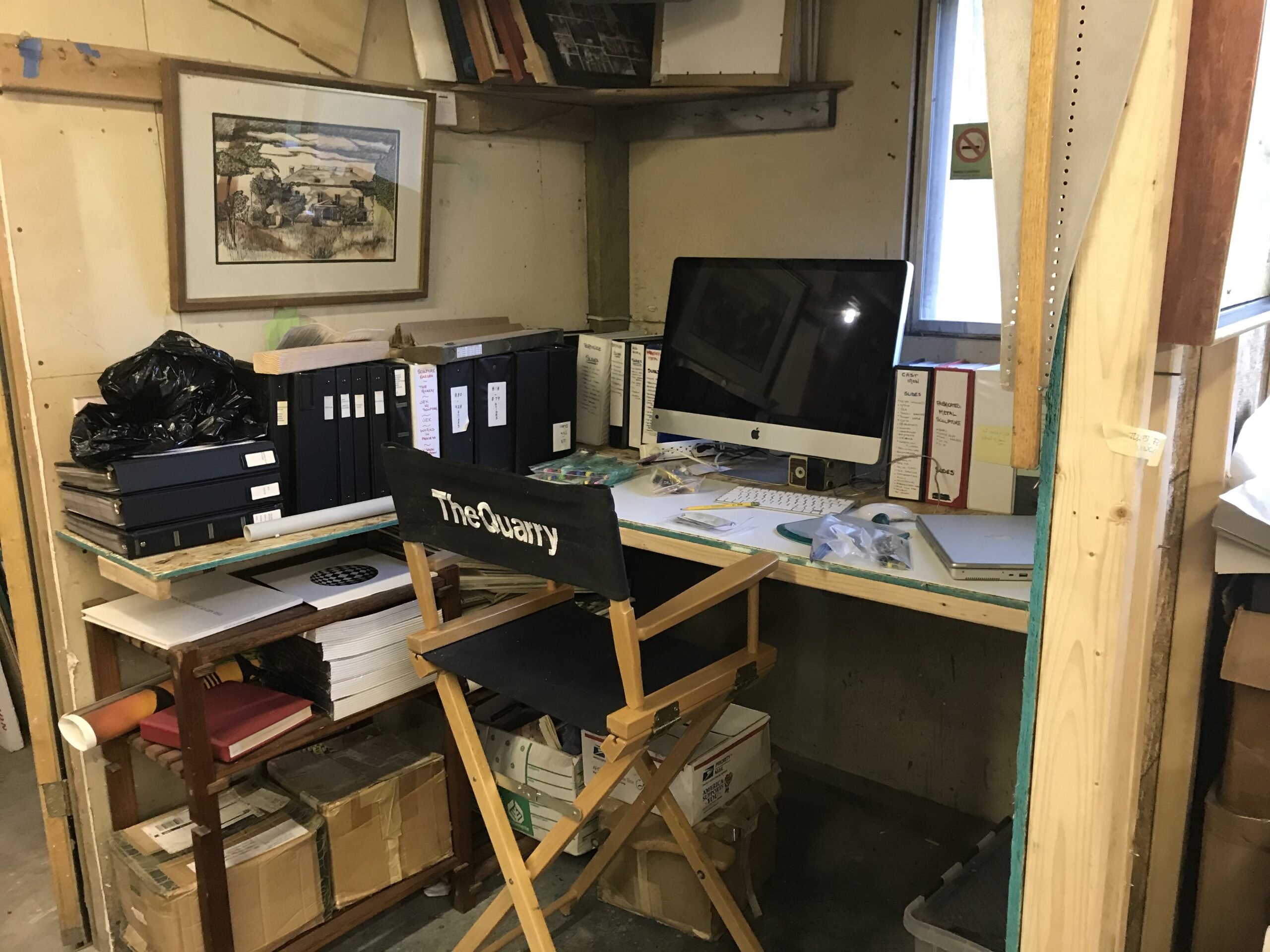 Studio One is a working environment. Cluttered, messy and to an outsider looks like chaos. When there are so many ideas being pursued simultaneously creative minds are rarely tidy. Kinnebrew’s book ADSUM (2 volumes) explain  some of the reasons for this to those who are curious about how, what and why  creativity  “happens”.